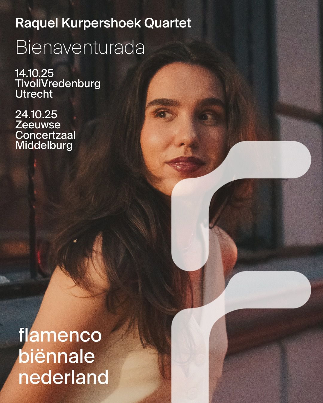 Raquel Kurpershoek studeerde af aan het Codarts conservatorium in Rotterdam en won het Prinses Christina Jazz Concours (2016), de Nationale Cultuurprijs van Spanje en diverse internationale muziekprijzen. Na het succes van haar eerste album Nizami (2022) waar ze liefdesgedichten van de middeleeuwse Perzische dichter-filosoof Nizami Ganjavi arrangeerde, maakt ze internationaal furore. Op de jubileumeditie van de Flamenco Biënnale laat ze een voorproefje van haar tweede album horen: Bienaventurada. Wat betekent: iemand met geluk.